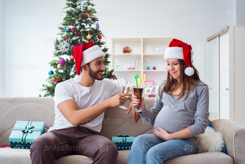 Молодая семья ждет ребенка, ребенок празднует Рождество