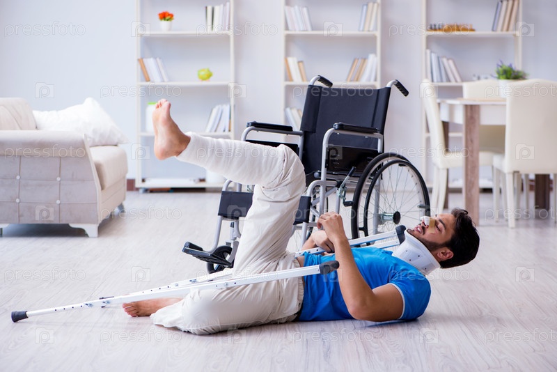 Раненый молодой человек восстанавливается дома