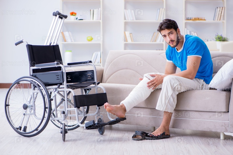 Раненый молодой человек восстанавливается дома