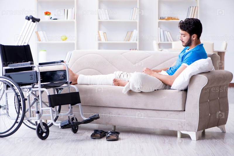 Раненый молодой человек восстанавливается дома