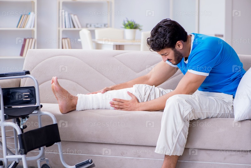 Раненый молодой человек восстанавливается дома