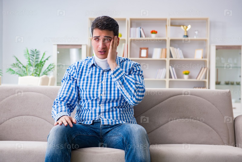 Молодой человек, страдающий травмой шеи позвоночника и головы, носящий шейную защиту