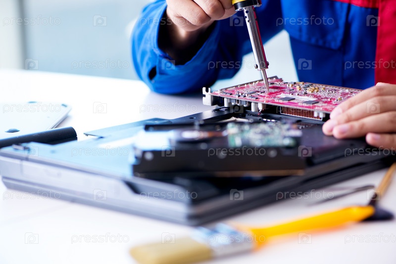 Ремонтник, работающий в технической поддержке по ремонту компьютера ноутбука tr