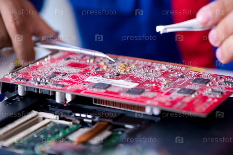 Ремонтник, работающий в технической поддержке по ремонту компьютера ноутбука tr