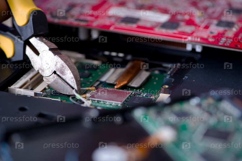 Ремонтник, работающий в технической поддержке по ремонту компьютера ноутбука tr