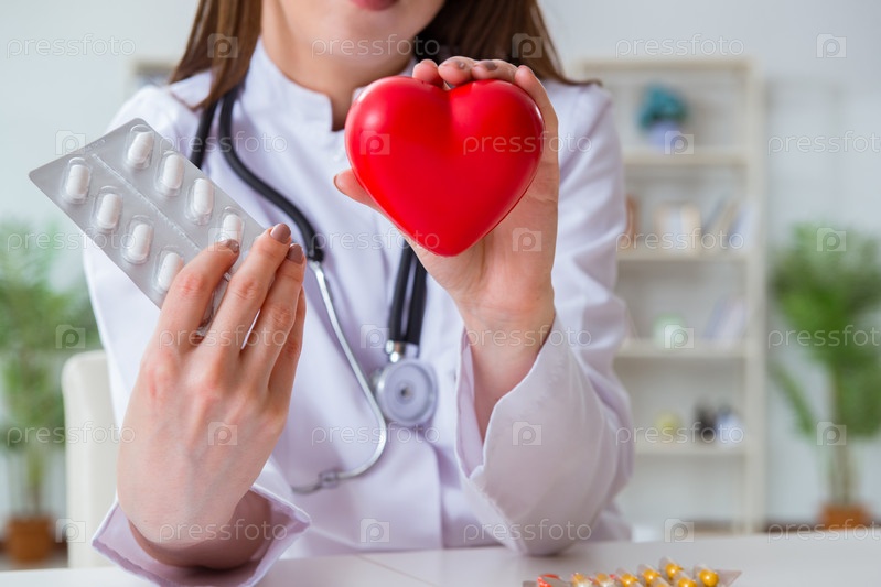 Врач-кардиолог с красным сердцем в больнице