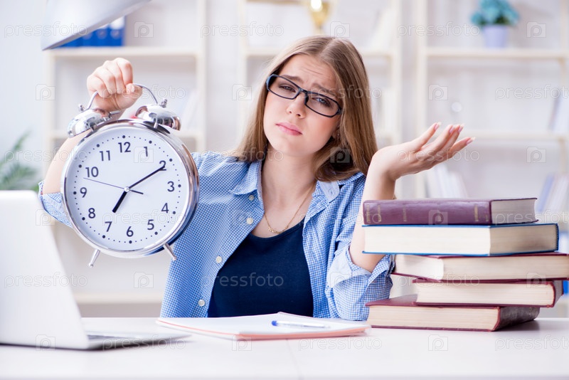 Молодая студентка-подросток готовится к экзаменам дома