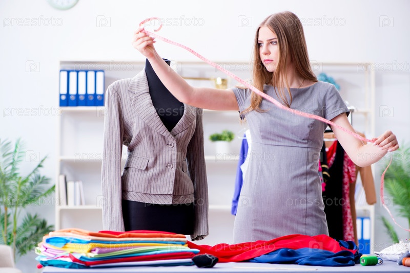 Молодая женщина-ремесленница работает в мастерской над новым платьем