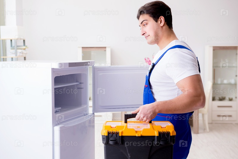 Ремонтник подрядчик ремонтирующий холодильник в концепции DIY