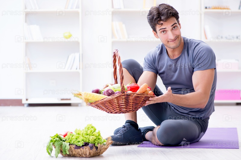 Мужчина, продвигающий пользу здорового питания и занятий спортом