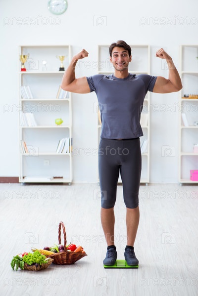 Мужчина, продвигающий пользу здорового питания и занятий спортом