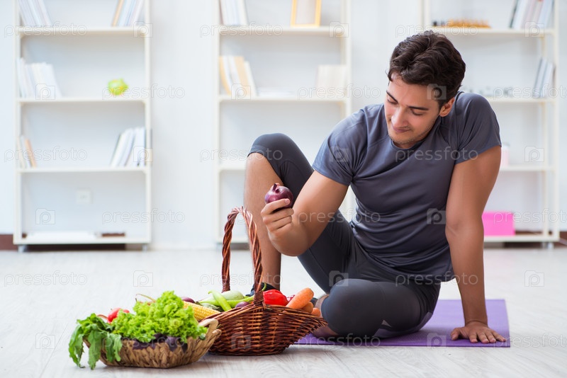 Мужчина, продвигающий пользу здорового питания и занятий спортом
