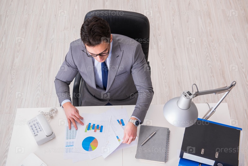 Вид сверху на бизнесмена, работающего над графиками бизнеса