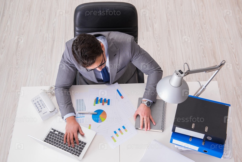 Вид сверху на бизнесмена, работающего над графиками бизнеса