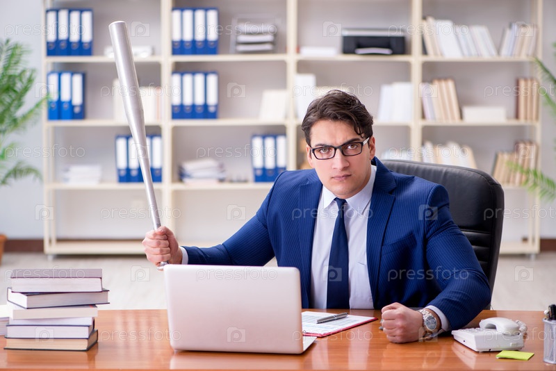 Гневливый агрессивный бизнесмен в офисе