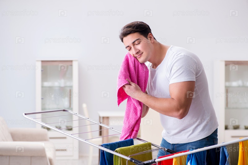 Мужчина, стирающий белье дома