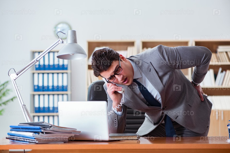 Бизнесмен чувствует боль в офисе