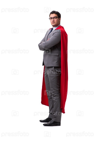 Супер-бизнесмен изолирован на белом герое