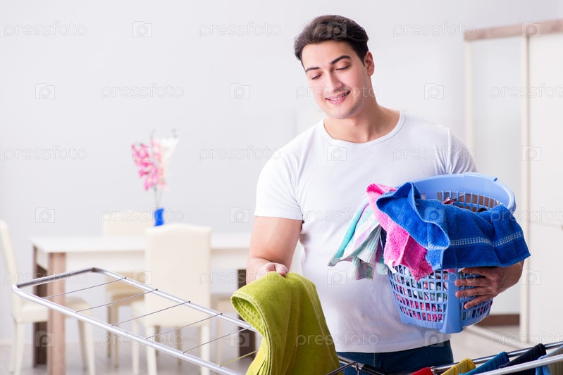 Мужчина, стирающий белье дома