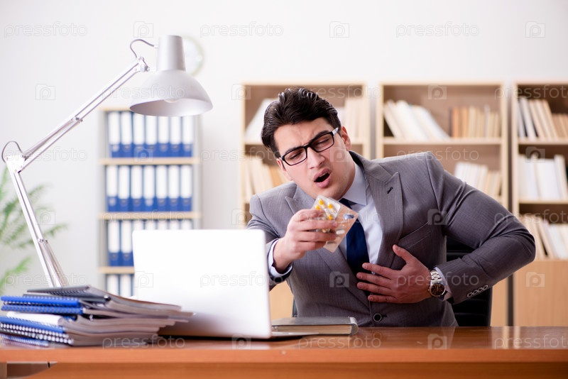 Бизнесмен чувствует боль в офисе