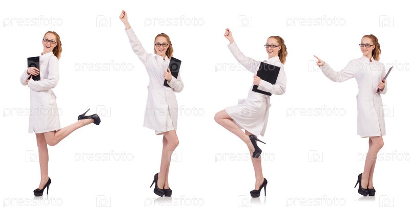 Красивая женщина-врач, держащая дневник изолированный на белом