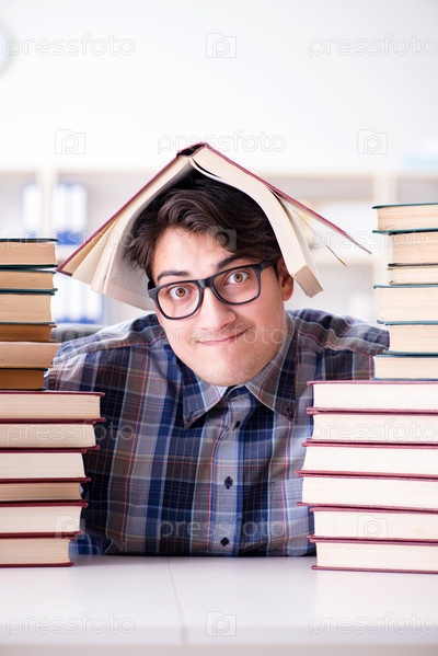 Глупый смешной студент готовится к экзаменам в университете