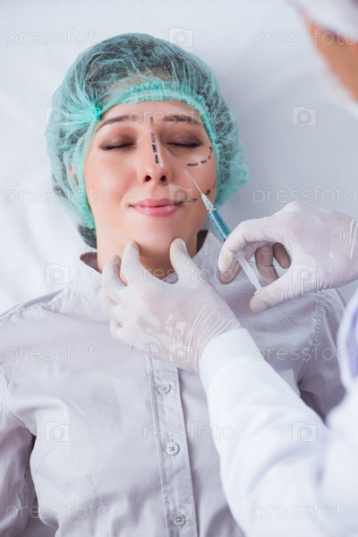 Пластический хирург готовится к операции на лице женщины