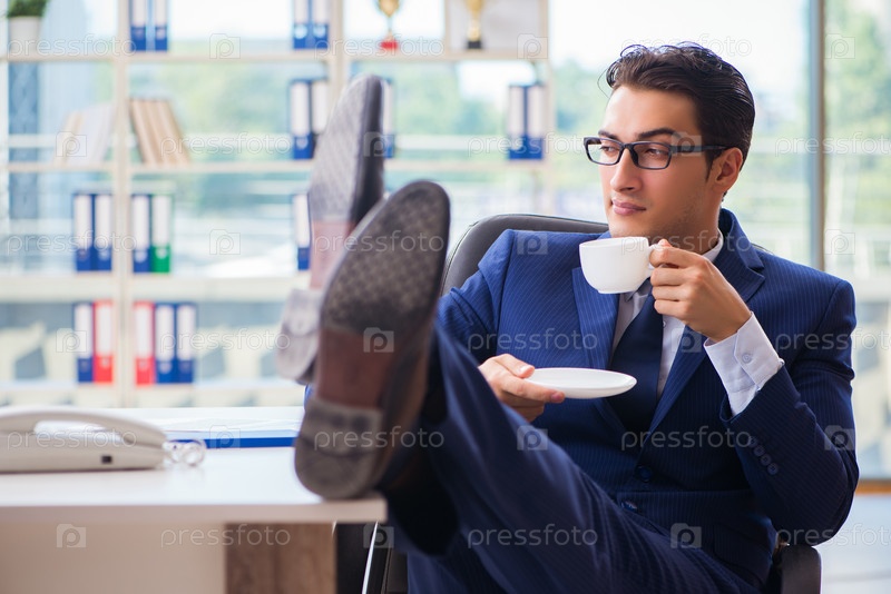 Бизнесмен пьет кофе в офисе во время перерыва
