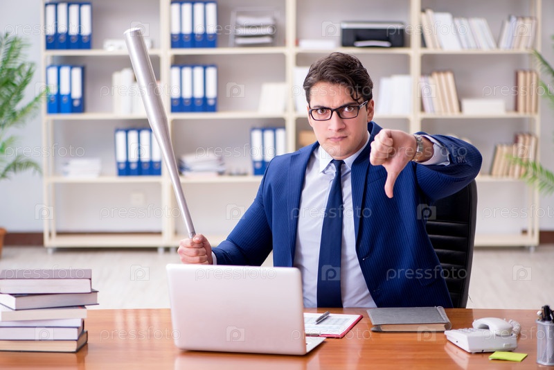 Гневливый агрессивный бизнесмен в офисе