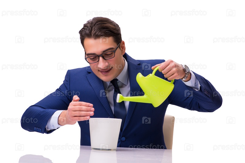 Бизнесмен с поливом может изолироваться на белом