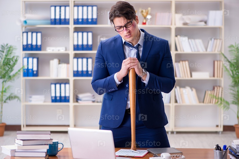 Гневливый агрессивный бизнесмен в офисе