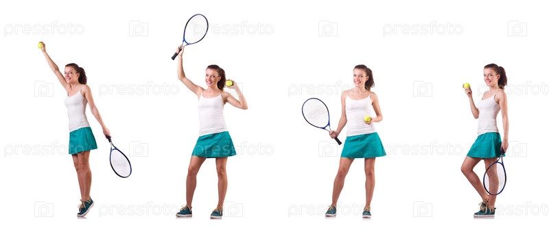 Теннисный игрок изолирован на белой женщине
