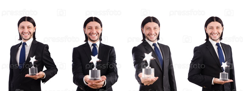 Бизнесмен с наградой 'Звезда' изолирован на белом