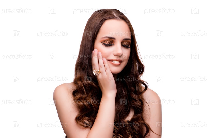 Молодая женщина в концепции красоты на белом изолированном фоне