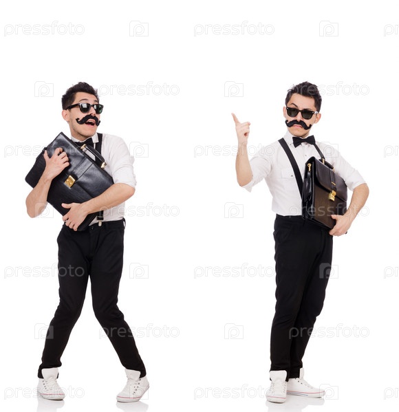 Молодой человек с портфелем изолирован на белом