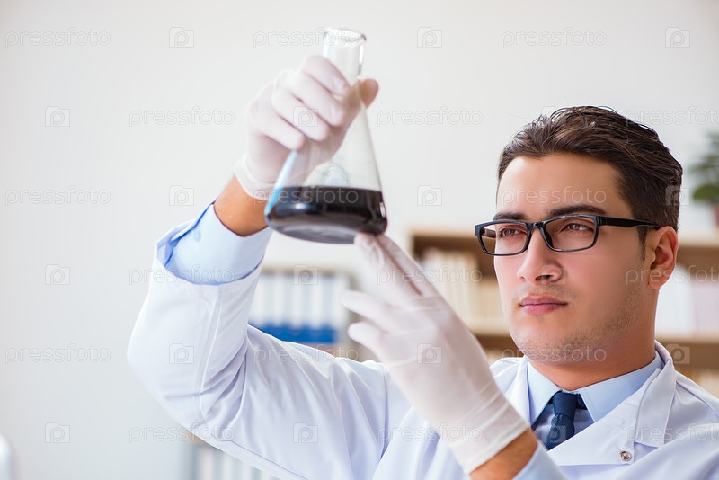 Химический инженер, работающий над образцами нефти в лаборатории