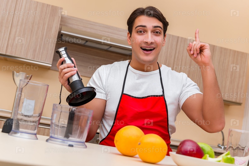Красивый мужчина работает на кухне