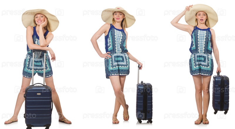 Коллаж женщины, готовящейся к летним каникулам в изоляции на белом