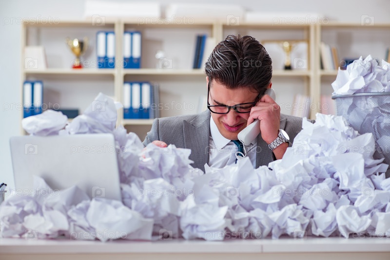 Бизнесмен в концепции переработки бумаги в офисе
