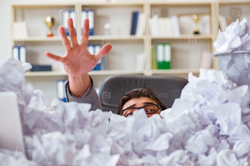 Бизнесмен в концепции переработки бумаги в офисе