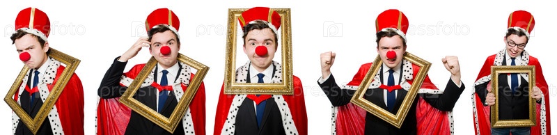 Бизнесмен с клоунским носом Забавный бизнесмен