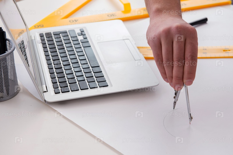 Инженер-мужчина, работающий над чертежами и планами