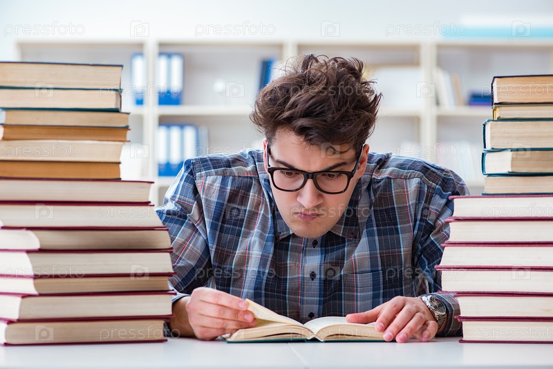 Глупый смешной студент готовится к экзаменам в университете