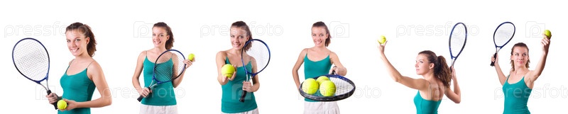 Теннисный игрок изолирован на белой женщине