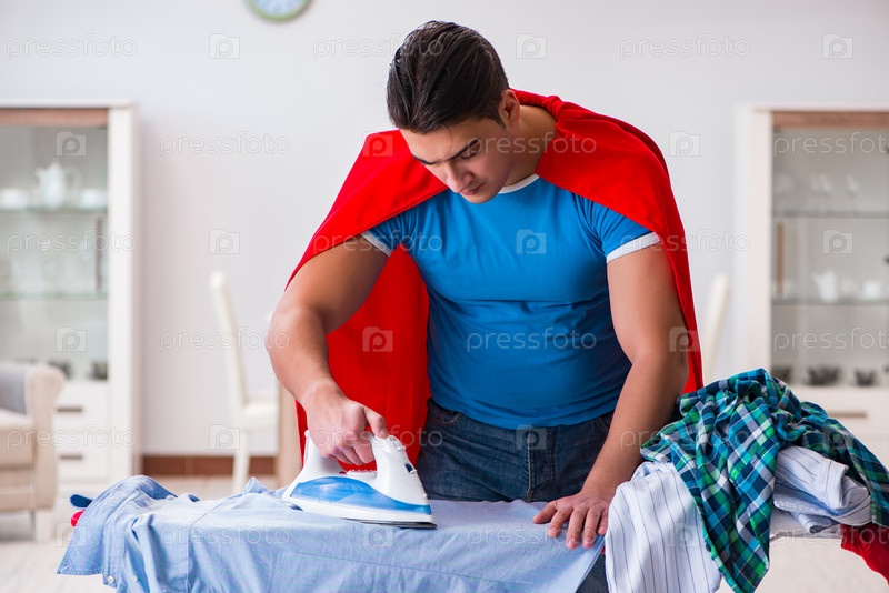 Супергерой-мужчина муж гладит дома
