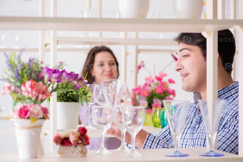 Молодая семья покупает в магазине