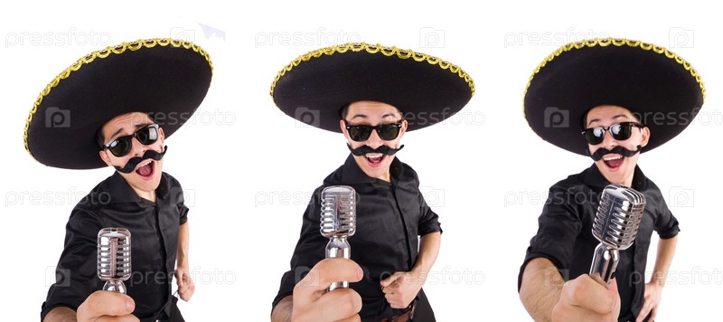 Забавный мужчина в мексиканской шляпе сомбреро, изолированной на белом