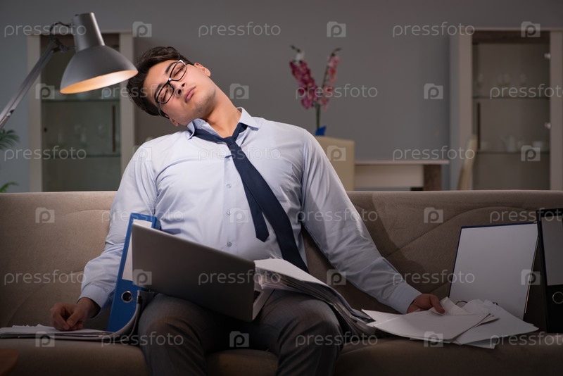 Бизнесмен-работохолик, работающий допоздна дома