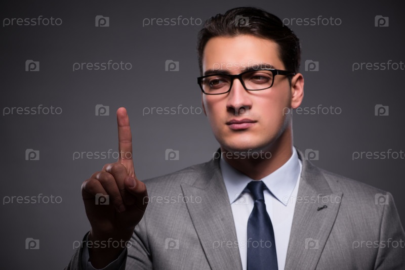Красивый бизнесмен, нажимающий виртуальные кнопки