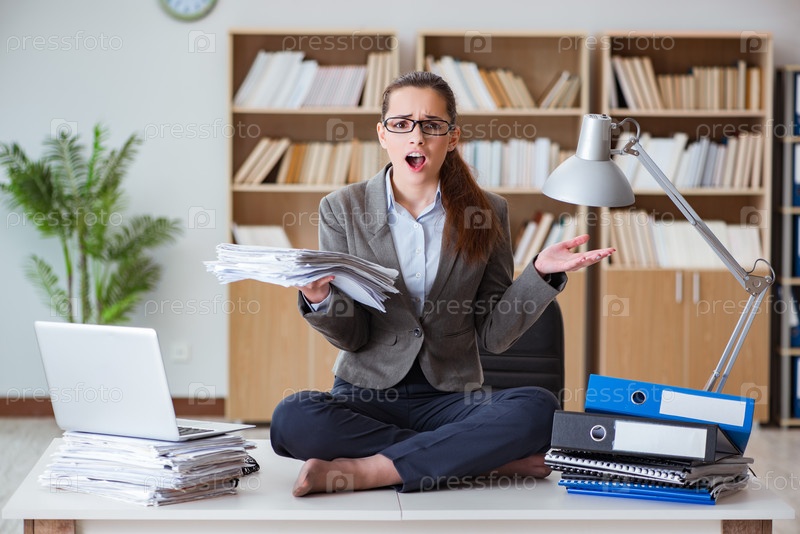 Загруженная сердитая деловая женщина, сидящая за столом в офисе